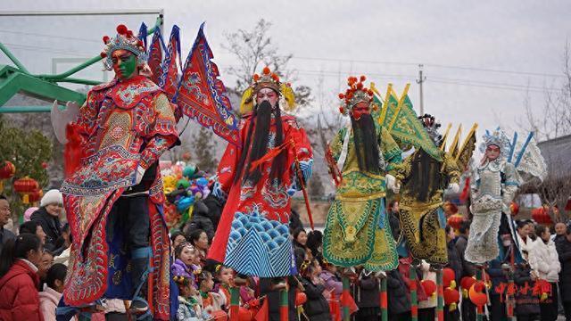 村民们也早早地聚集在村口的广场上,脸上洋溢着期待的笑容。广场上,灯笼高挂,锣鼓喧天,一场盛大的社火表演即将拉开帷幕。